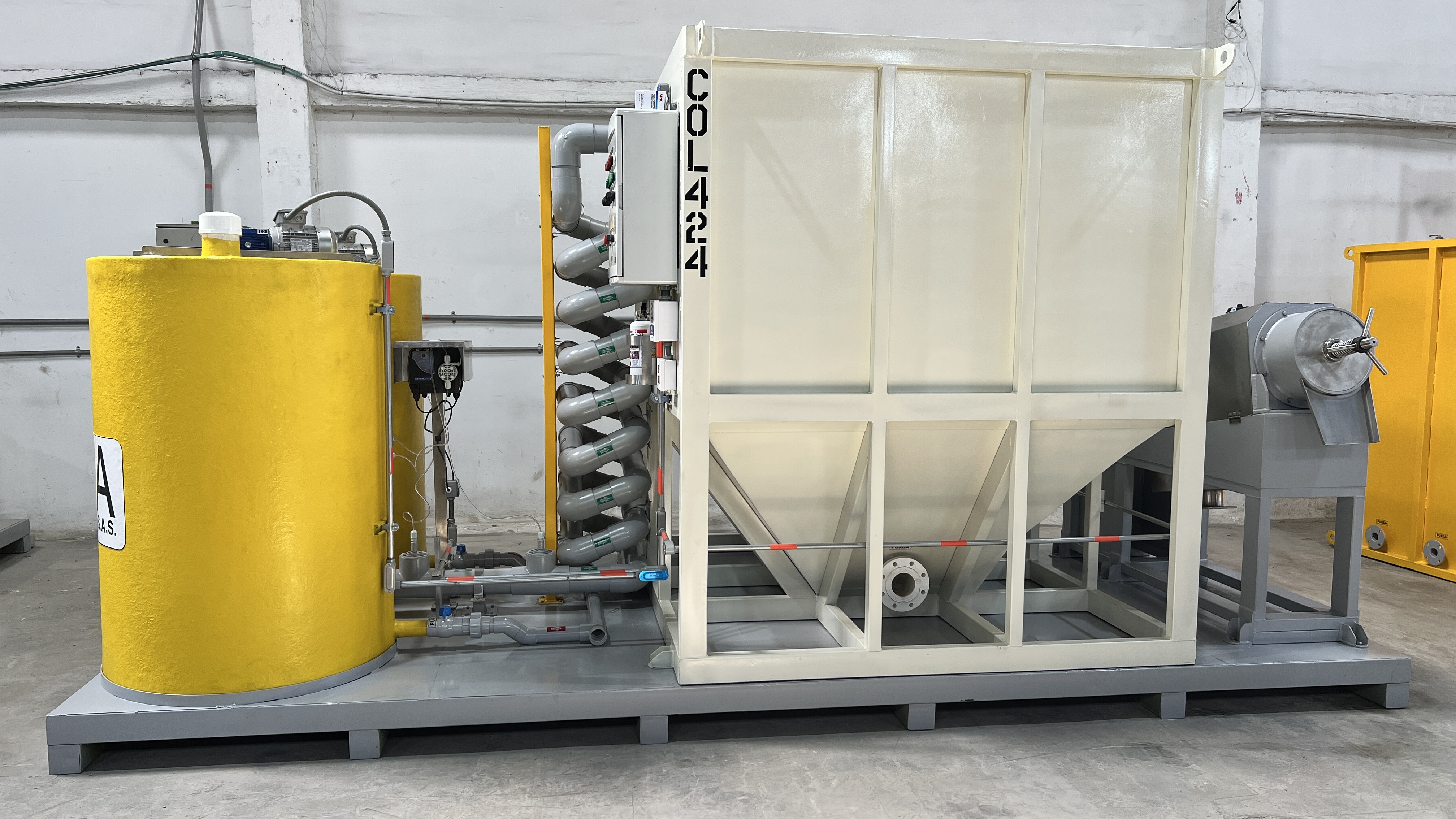El tornillo para prensado de lodos con decantador y mezclador estático es un sistema avanzado diseñado para mejorar la eficiencia en la separación sólido-líquido en diversas aplicaciones industriales y en el tratamiento de aguas residuales. Su diseño compacto integra tres etapas fundamentales del proceso: mezcla, decantación y prensado, optimizando el manejo y reducción de lodos de forma efectiva. El tornillo para prensado de lodos con decantador y mezclador estático es una solución eficiente y sostenible para el manejo de lodos en diversas industrias. Su diseño innovador permite optimizar procesos, reducir costos y mejorar el impacto ambiental de los sistemas de tratamiento de aguas residuales y separación sólido-líquido.